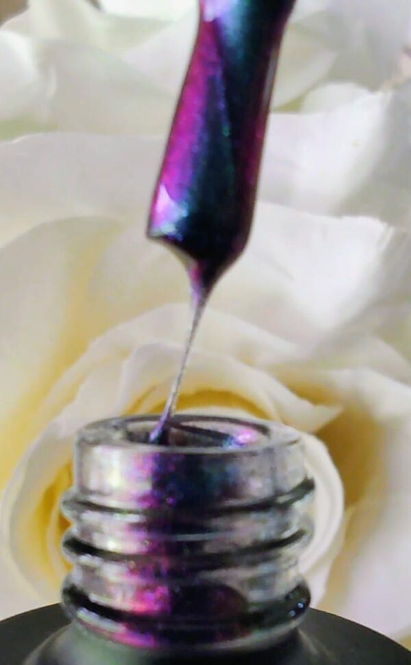 Inspirado en la estrella más brillante del Águila, Altair despliega un verde esmeralda profundo con reflejos tornasolados. Su efecto cat eye crea un haz de luz que se mueve con el imán, logrando un acabado hipnótico y sofisticado.